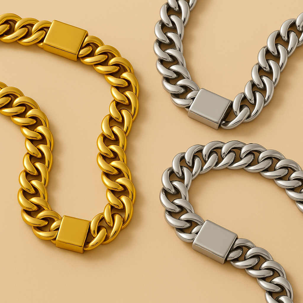 Elevate your look with this premium polished stainless steel chain, available in sophisticated Silver or Gold finishes. Choose between 7mm or 11mm thickness and lengths from 20” to 26” to find your perfect fit. Crafted for durability, this hypoallergenic chain resists rust, fading, and tarnishing, making it ideal for everyday wear or special occasions. Each chain arrives in a protective pouch, ready for gifting, with fast UK shipping ensuring prompt delivery from a trusted local seller.